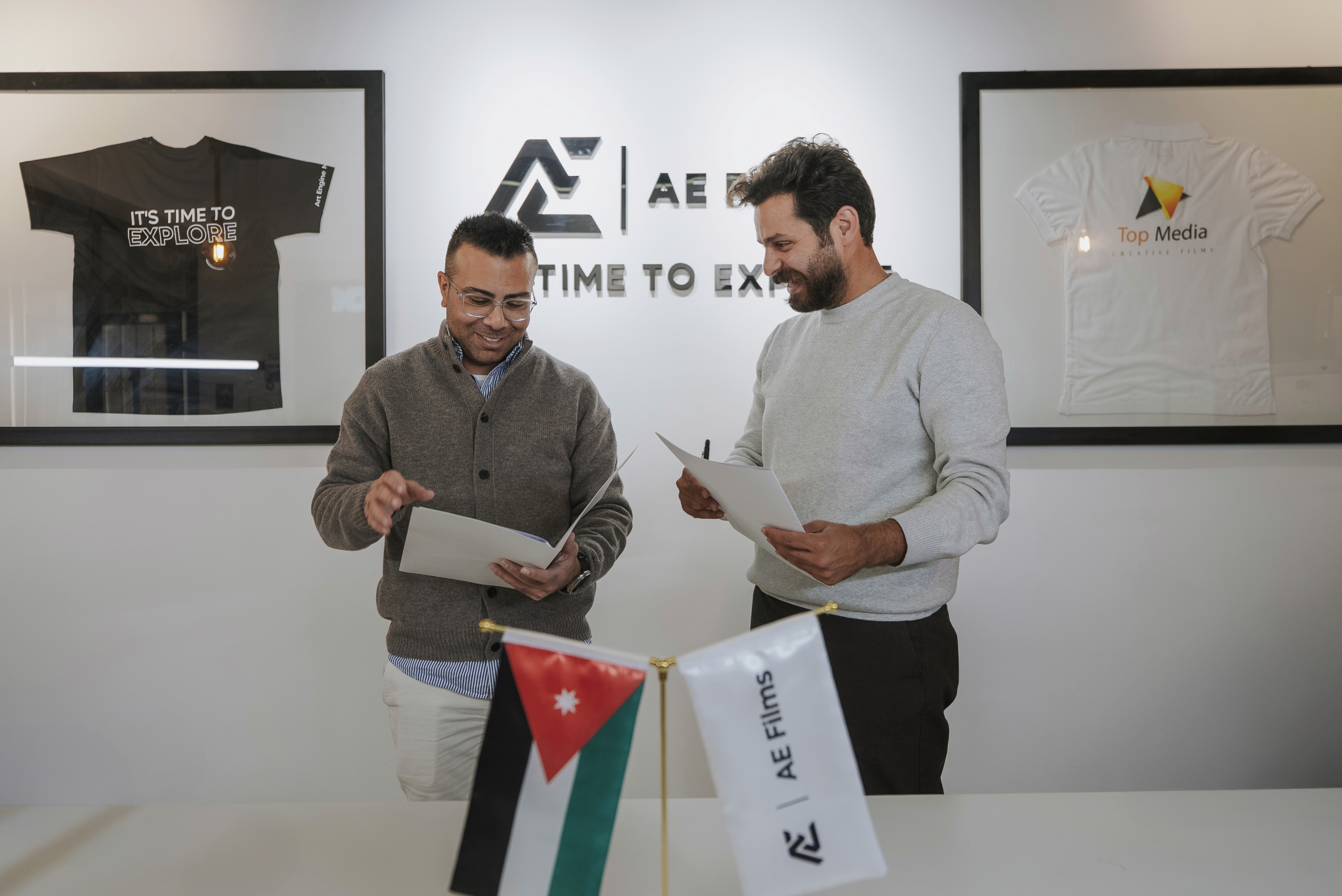 من الأردن إلى فلسطين، يسرّنا الإعلان عن إحدى توجّهاتنا الاستراتيجية لعام ٢٠٢٦ وذلك من خلال توقيع اتفاقية تعاون إبداعي بين AEFilms في عمّان - الأردن و AJ Production في القدس - فلسطين.